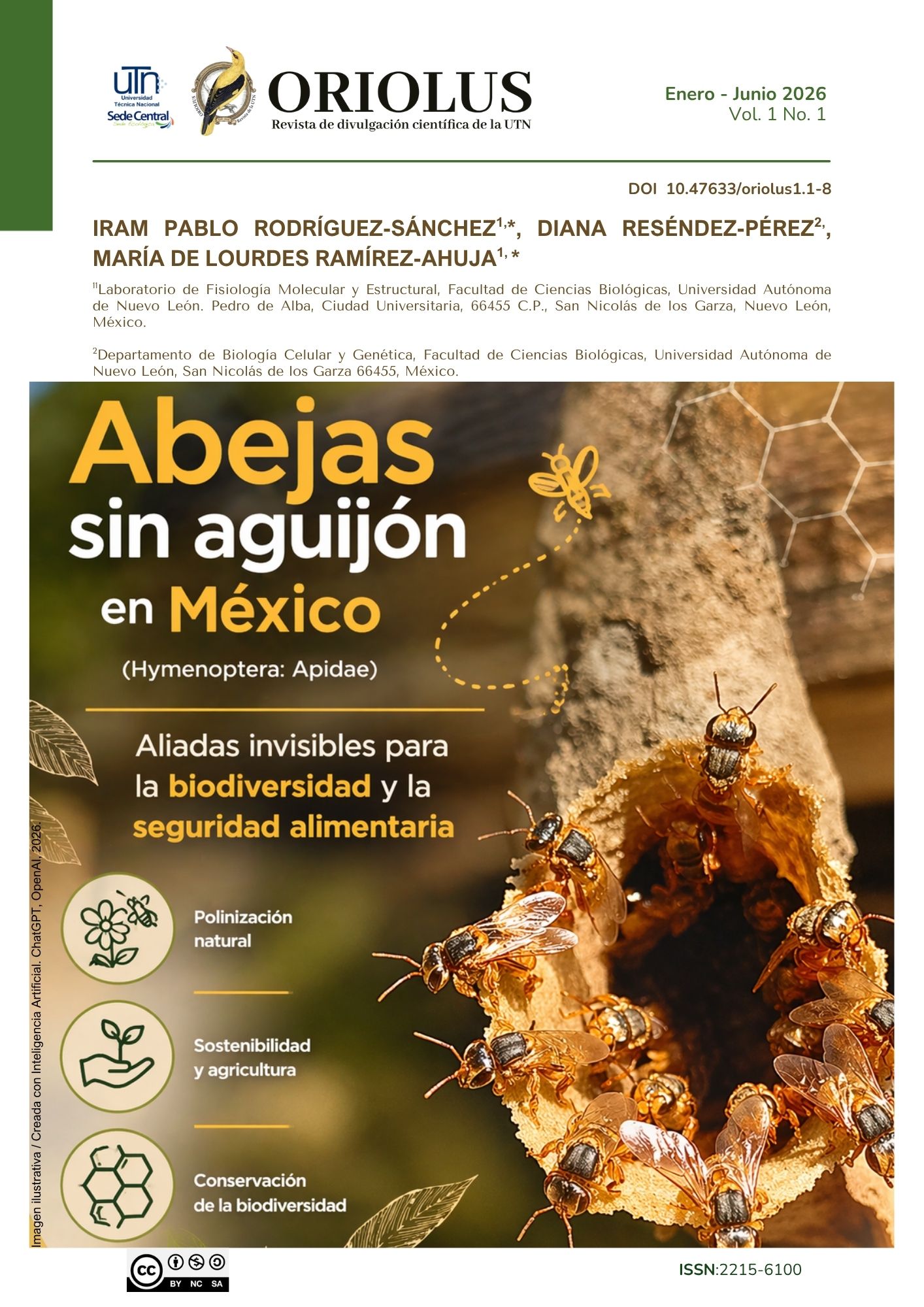 Ramirez Ahuja, M. de L., Rodríguez Sanchez, I. P., & Reséndez Pérez, D. (2026). La Abejas sin aguijón en México (Hymenoptera: Apidae): Aliadas invisibles para la biodiversidad y la seguridad alimentaria: Abejas sin aguijón. Oriolus, 1(1), 1–4. https://doi.org/10.47633/oriolus1.1-8